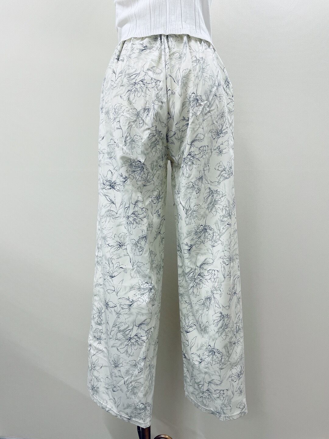 一枚で華やぐ、主役級花柄ワイドパンツ。