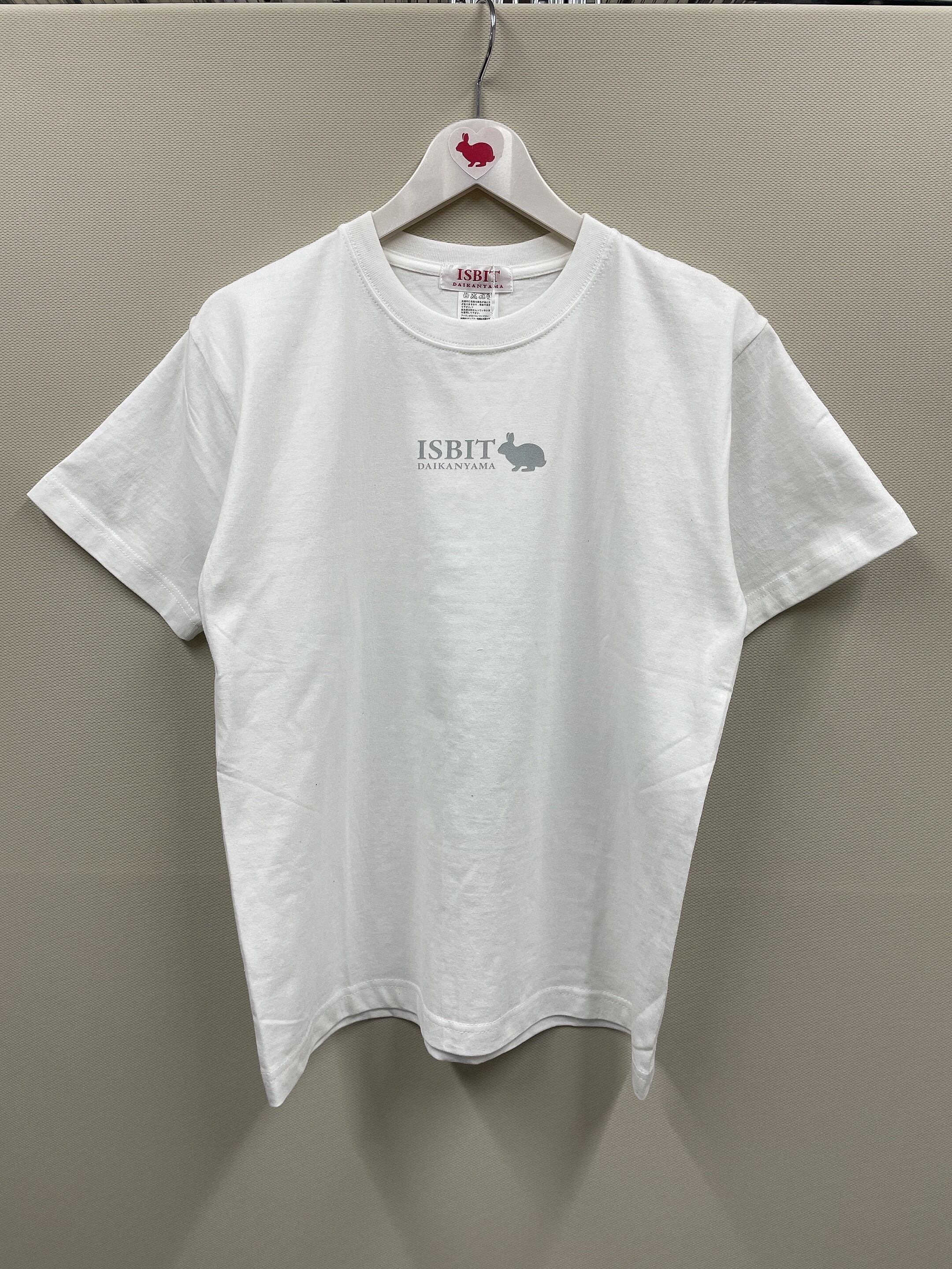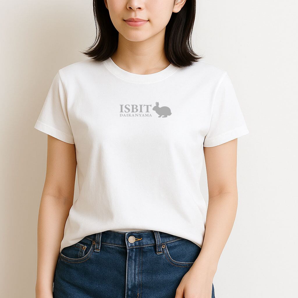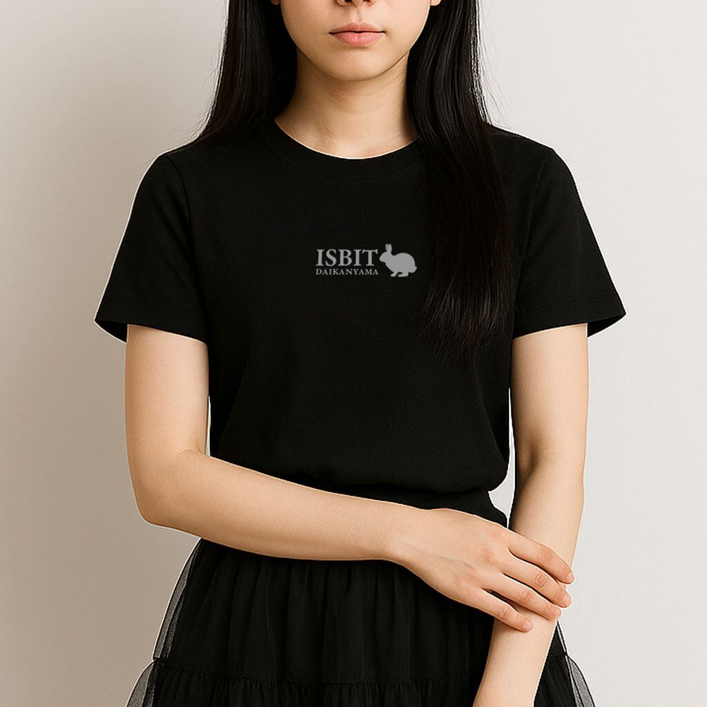 胸元に「ISBIT DAIKANYAMA」のロゴと、ウサギのシルエットをワンポイントであしらったミニマルなデザイン。